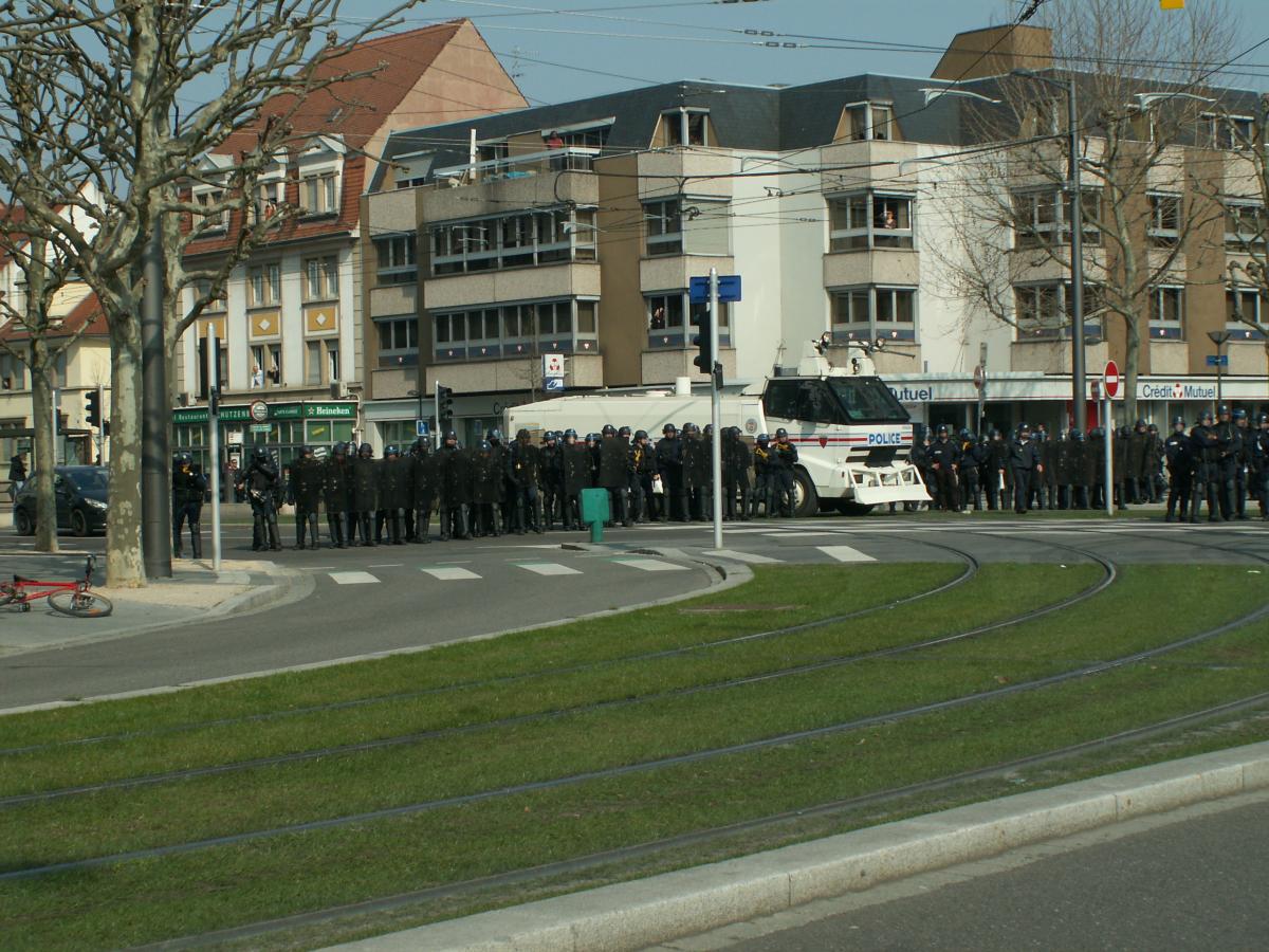 flics bloquant les accés au centre le samedi matin, onremarquera que les flash ball sont de sortie de manière offensive