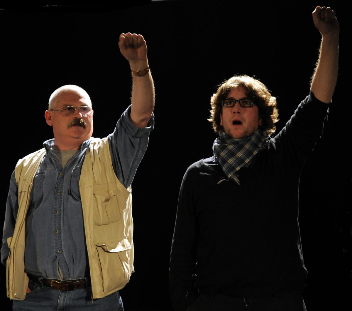 ouvrier de l'automobile Cgt et Miguel Urban de Izquierda Anticapitalista chantant l'internationale