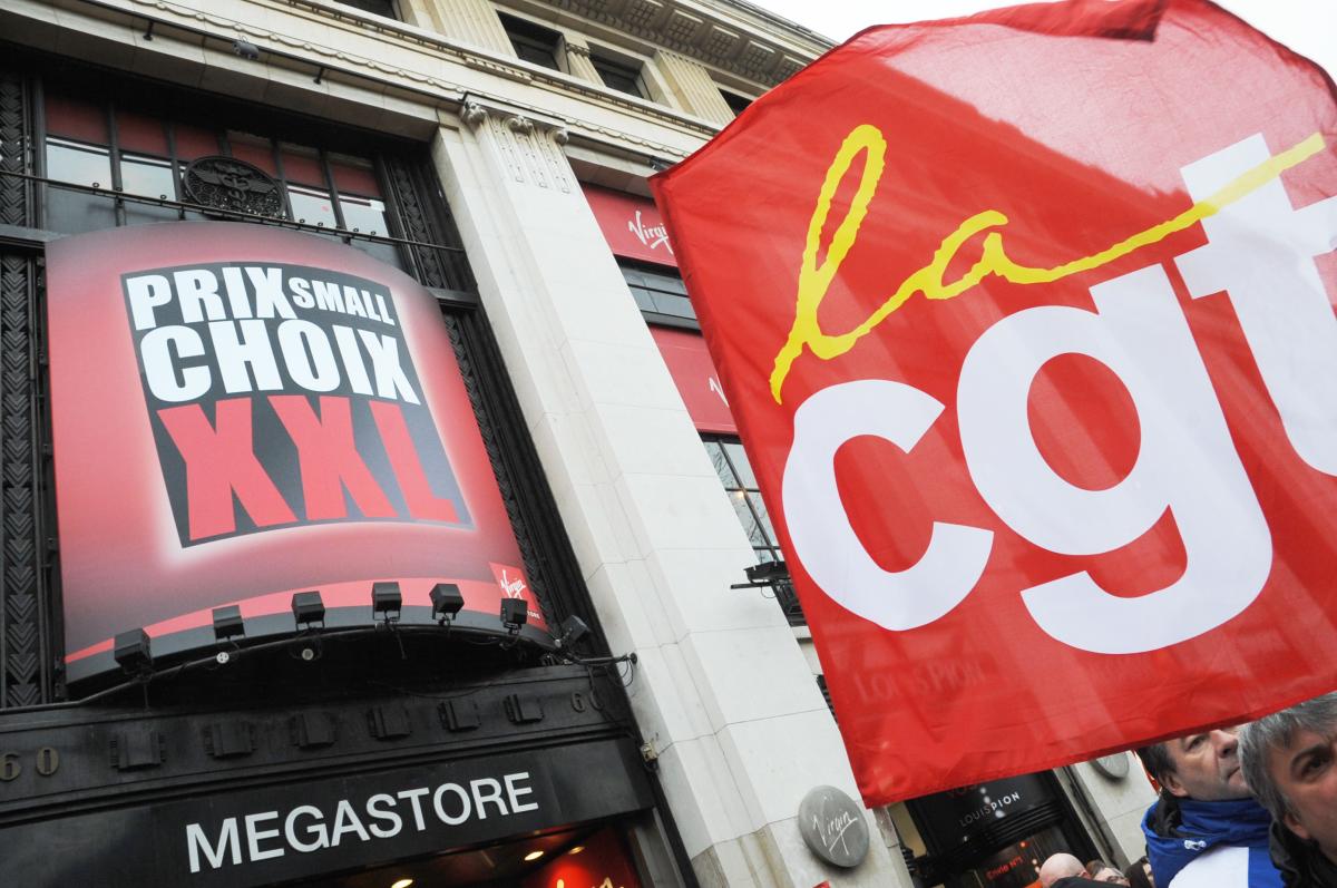 Virgin champs Elysées drapeau Cgt
