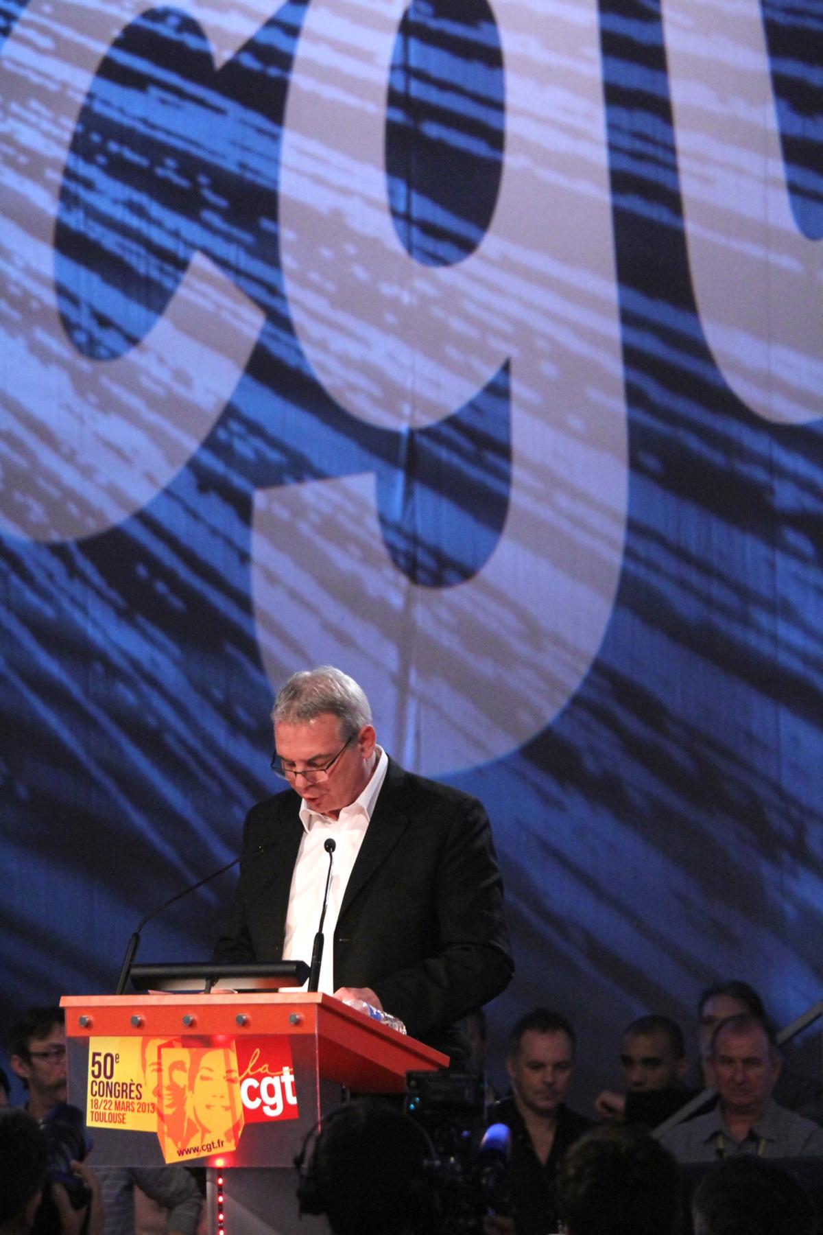 50° congrès de la CGT, à Toulouse, du 18 au 22 mars 2013. Bernard Thibault laisse la place à Thierry Le Paon