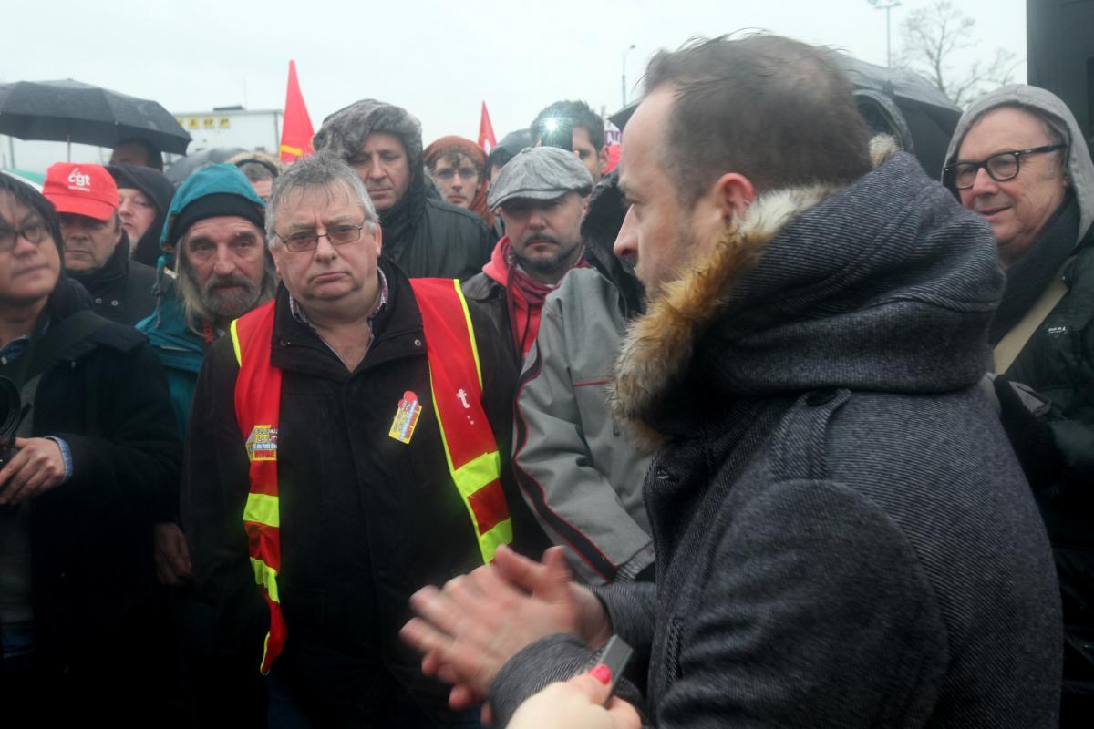 Jeudi 17 janvier 2014, rassemblement de soutien aux salariés de Goodyear qui occupent leur usine. Ce rassemblement à l'initiative de la section CGT d'ArcelorMittal a regroupé 300 personnes venues en délégation de différentes usines de la chimie et de l'automobile.