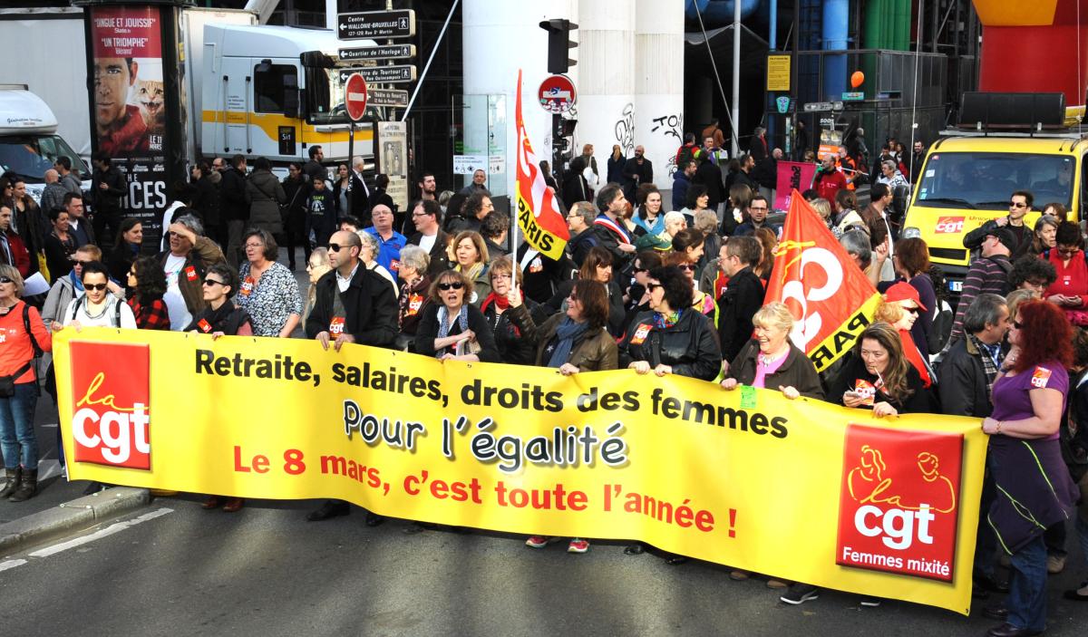Banderolle Cgt Ile de France à l'appel de la marche mondiale des femmes