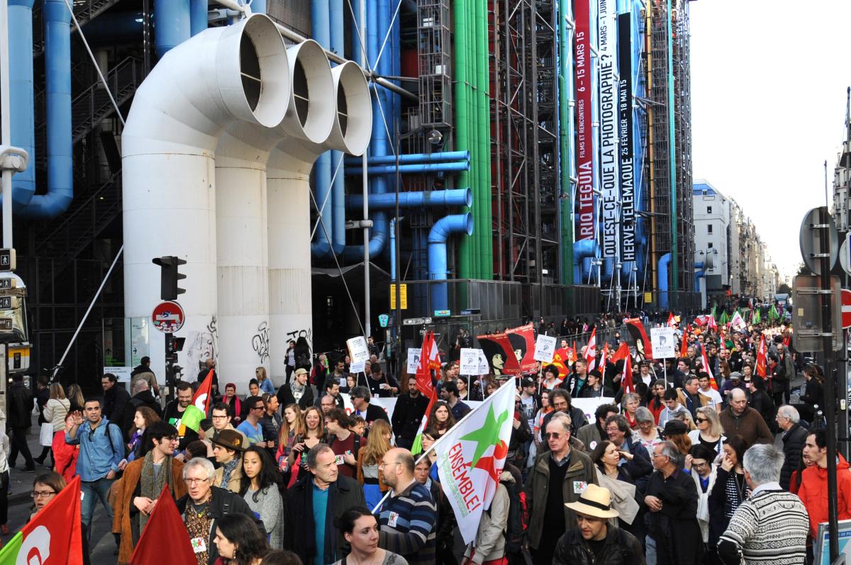 Paris dimanche 8 mars 2015. Manifestation à l'appel de la marche mondiale des femmes, à partir de la place de la République, en direction de l'Hôtel de ville.