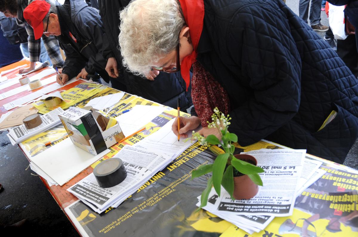 Signataires au Stand de Sud manifestation du 1er Mai Pas de prison pour Gaëtan et les autres condamnés pour avoir manifesté