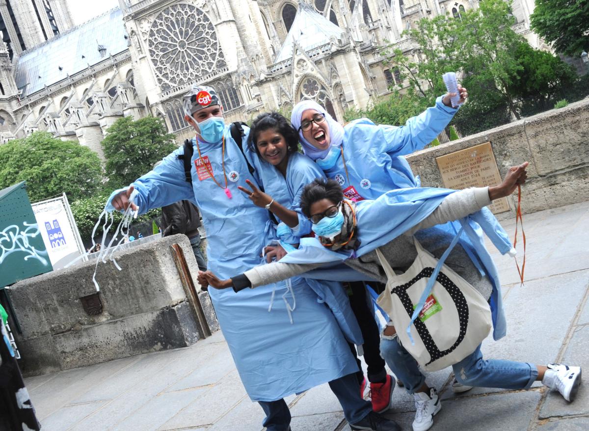 Salariés de l'AP-HP en grêve contre le projet de Martin Hirsch de remise en cause des RTT devant Notre Dame