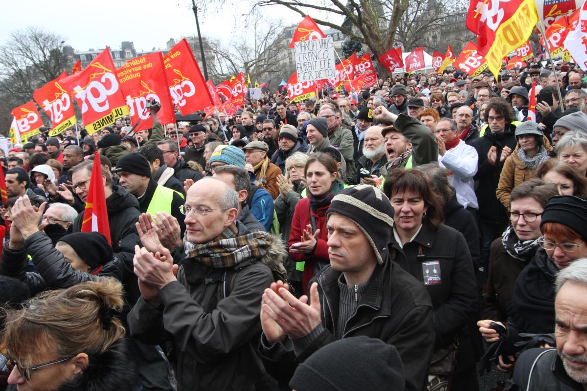Paris, 4 février 2016, place de la Nation, rassemblement de soutien aux Goodyear condamné à de la prison ferme pour avoir séquestré deux cadres de l'entreprise.