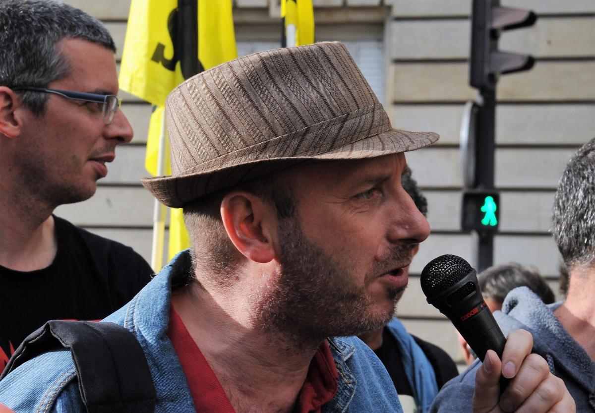 Eric Beynel porte-parole du syndicat Sud Solidaires (syndicat dorigine Sud Douanes) en soutien a Gaël Quirante