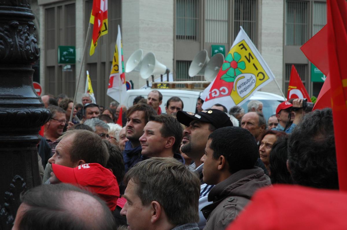 O Besancenot devant la Bourse de Paris.17-09 09.