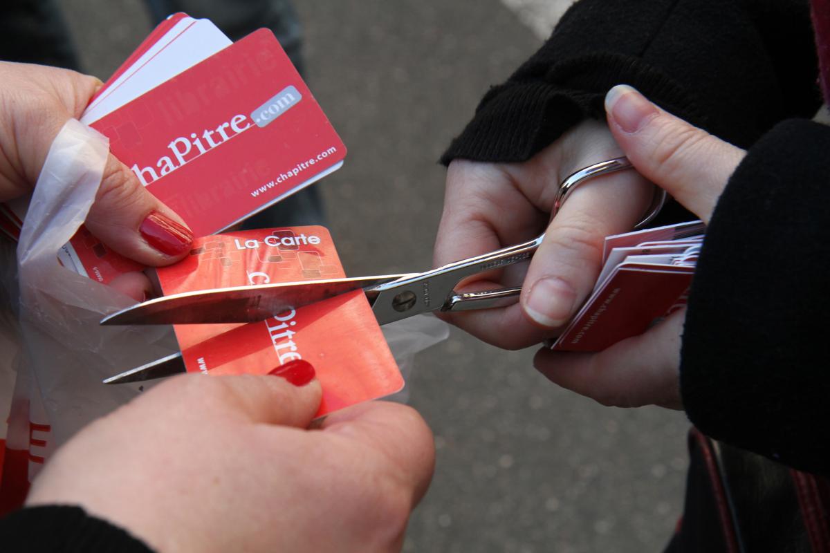 Paris, le 24 février 2014, montée nationale des salariés des librairies Chapitre au siège de la société qui appartient au groupe France Loisirs. 434 emplois vont être supprimés. Philippe Poutou est venu les soutenir dans leur mobilisation