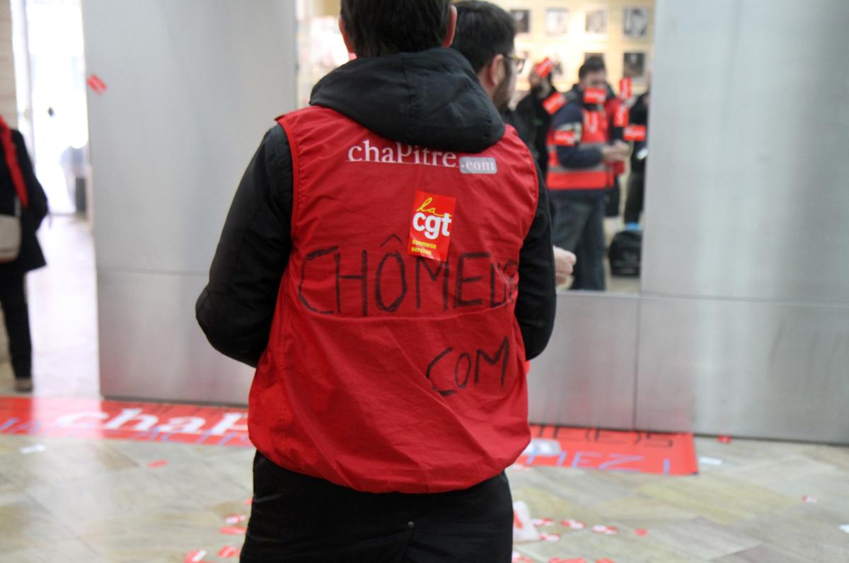 Paris, le 24 février 2014, montée nationale des salariés des librairies Chapitre au siège de la société qui appartient au groupe France Loisirs. 434 emplois vont être supprimés. Philippe Poutou est venu les soutenir dans leur mobilisation