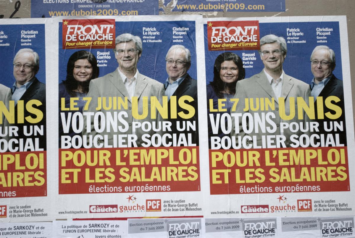 Une affiche du front de gauche pour les européennes de juin 2009. Avec Patrick Le Hyaric, Raquel Garrido, et Christian Picquet.