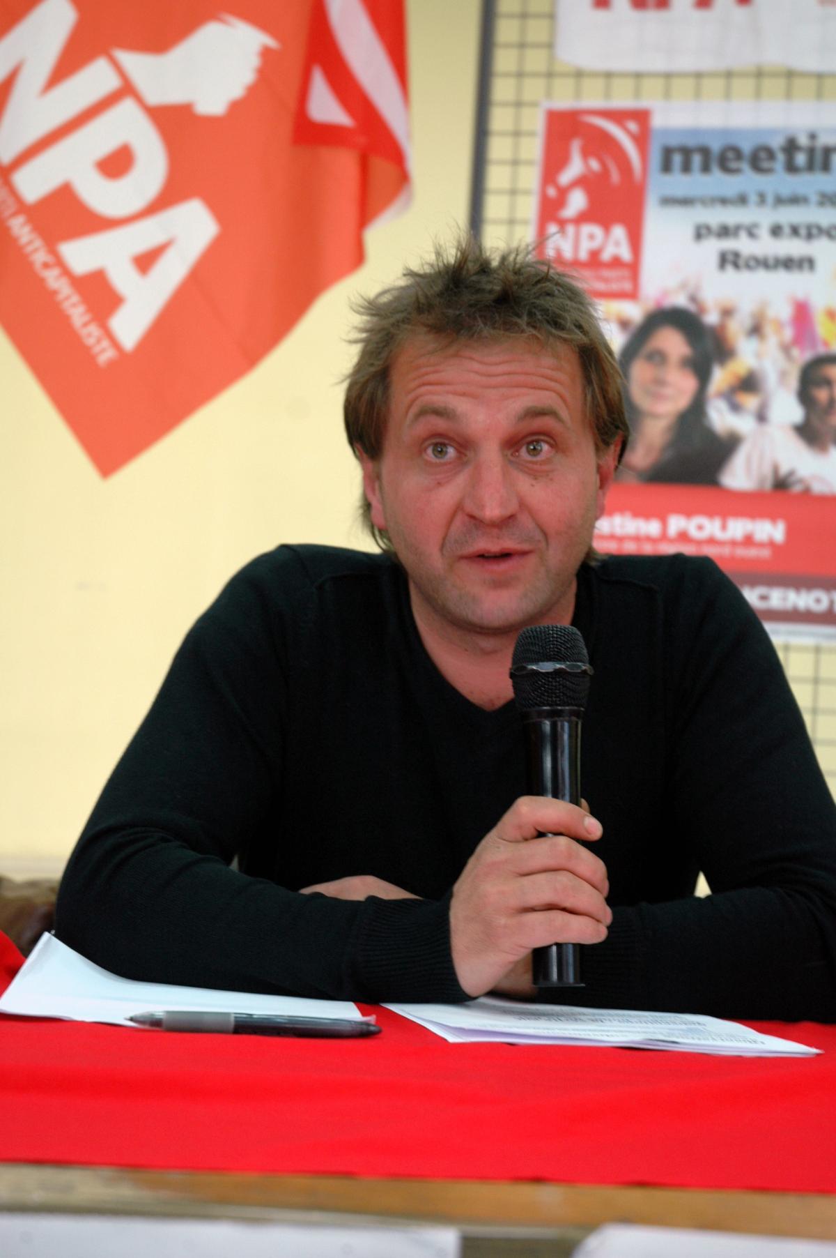 Cherbourg le 18 mai 2009. Réunion publique du NPA pour les Elections Européennes 2009. Stéphane Royer à la tribune.