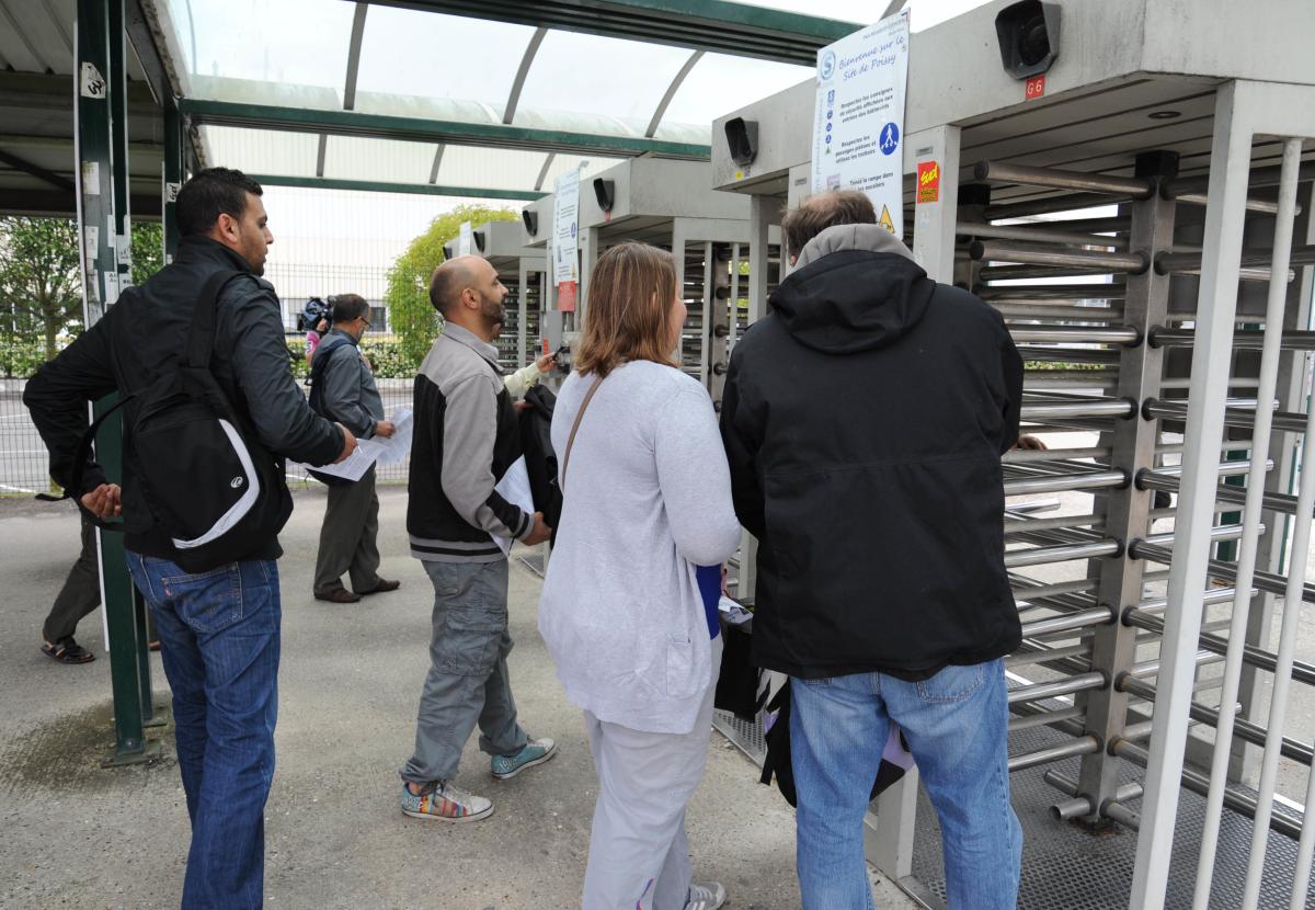Olivier Besancenot, candidat tête de liste en Ile de France aux Européennes Usine PSA Poissy Yvelines 20 mai 2014