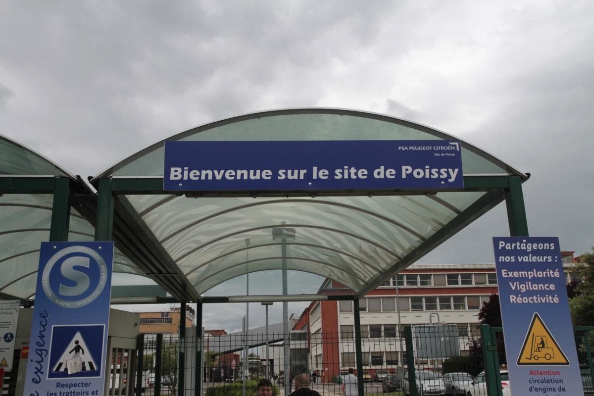Journée de campagne Européennes dans les Yvelines. Olivier Besancenot devant PSA Poissy, au service psychiatrique de l'Hôpital de Poissy-St.Germain, au Technocentre Renault de Guyancourt, et enfin au dépot de bus Phébus bloqué par les salariés.