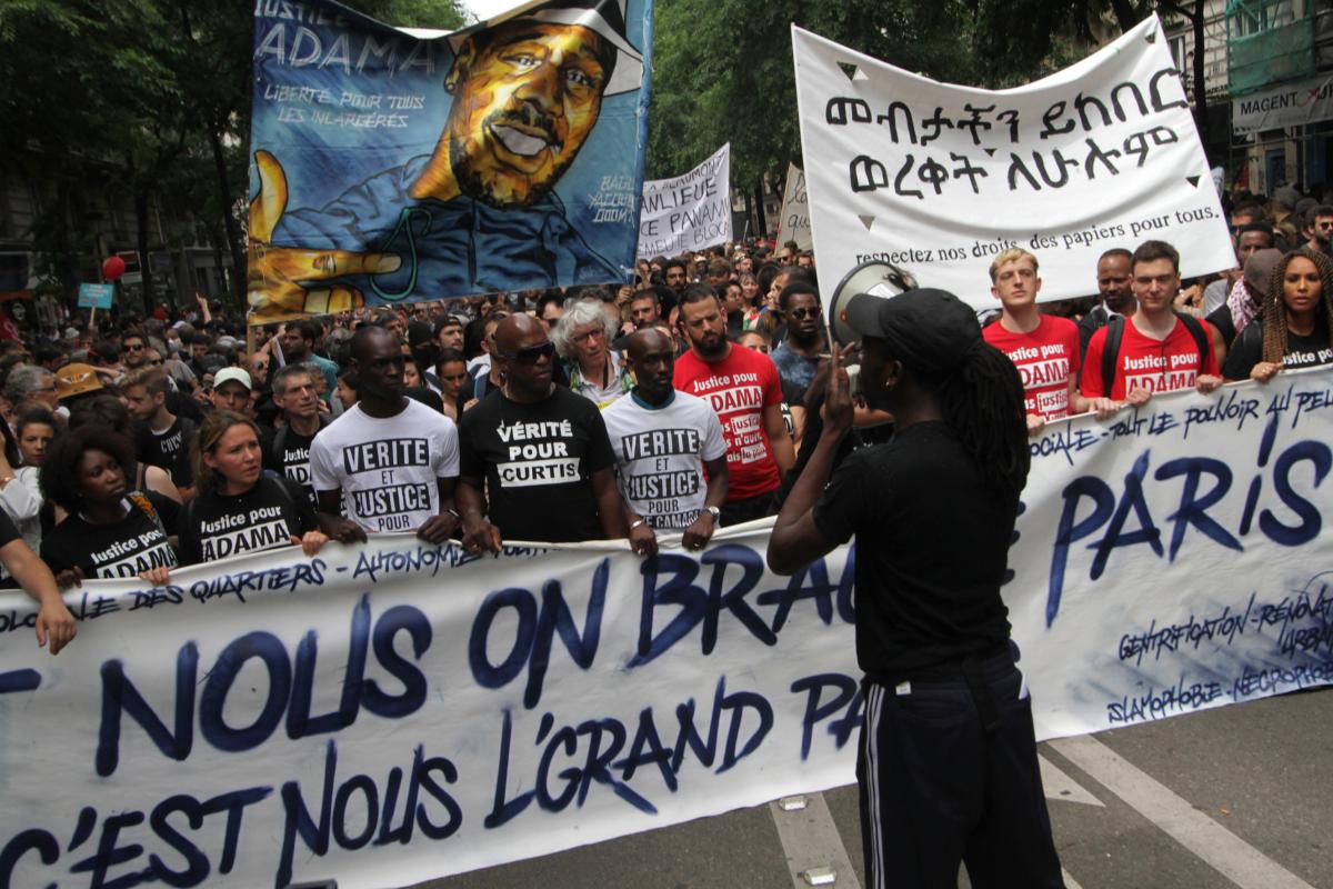 Cortège justice pour Adama, Vérité pour Curtis, en tête de manifestation