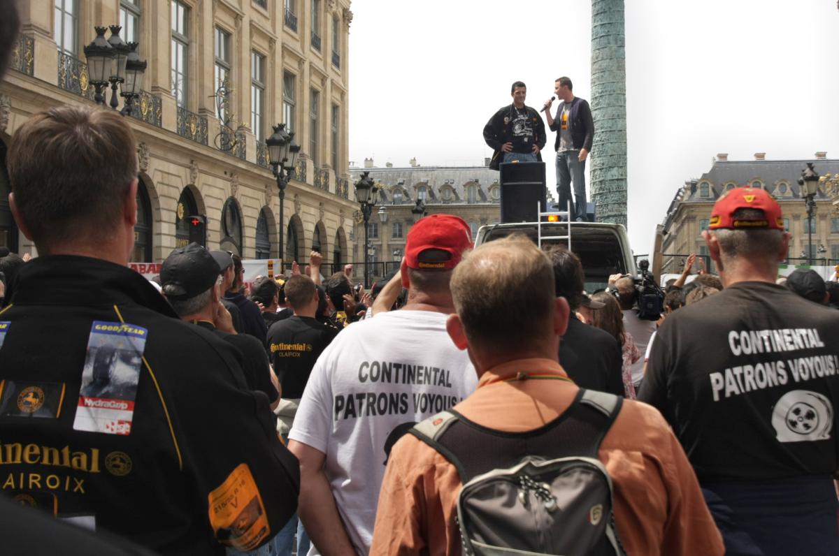 manifestation le 24 juin 2009 des salariés de Continental en direction du Ministère de la justice place Vendôme. La police bloque l'accès à la place. PARIS/2009/06/24/JMB.