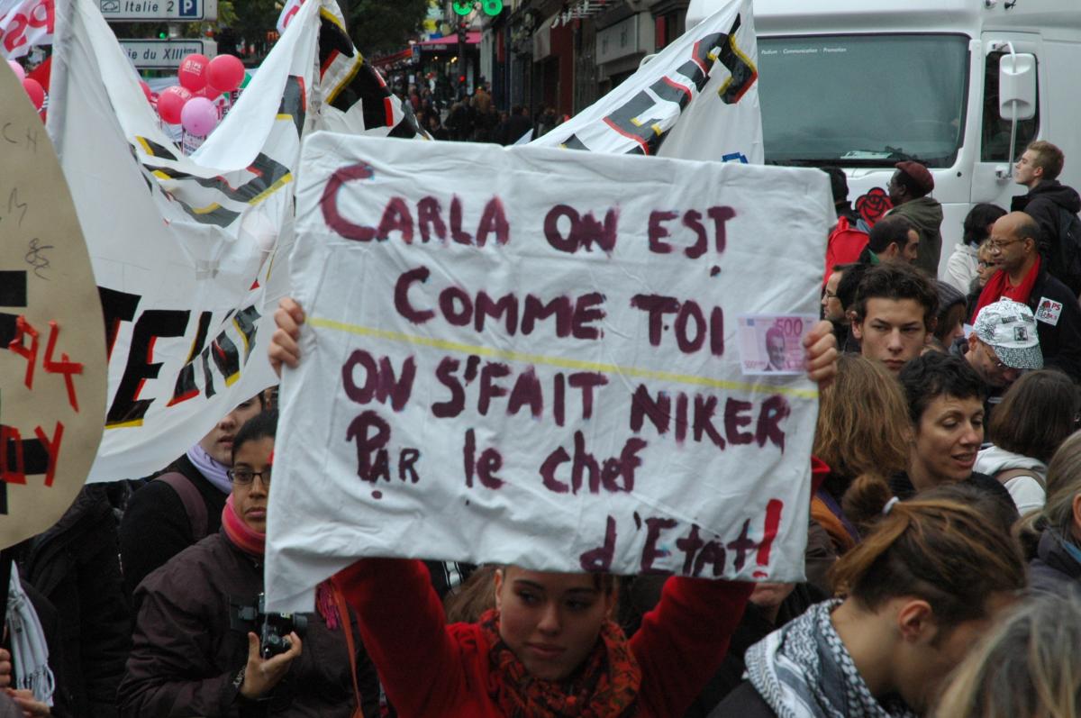 pancarte humoristique lycéene, Carla on est comme toi on se fait niker par le chef d'état!