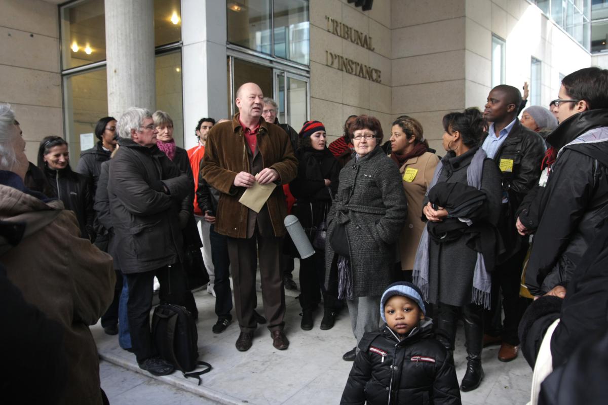 26 janvier 2010 Saint-Denis tribunal d'instance. La Poste tente d'obtenir de la justice l'expulsion des familles qui ont été installées par un large collectif d'associations dans des logements de fonction laissés vides depuis 2002.