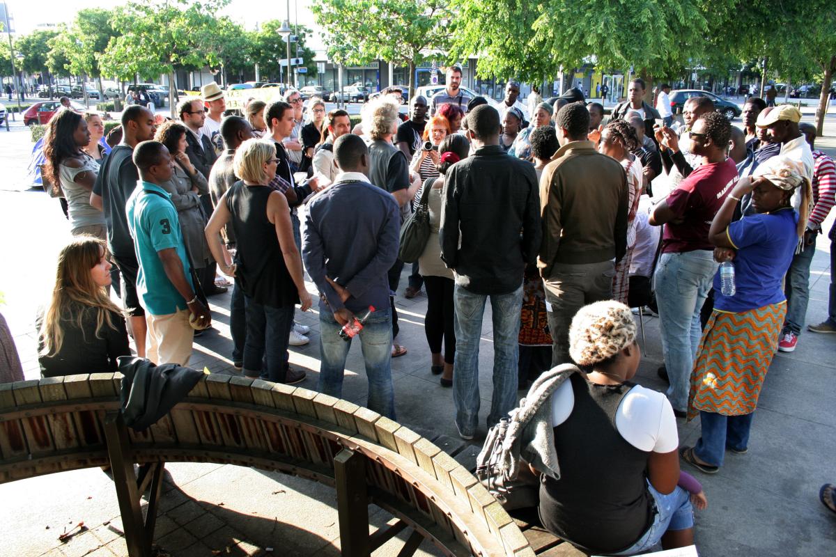 La courneuve, le 11 mai 2011, campement des expulsés de la barre Balzac. Le maire de La Courneuve demande au préfet Lambert l'évacuation de la place de la Solidarité.