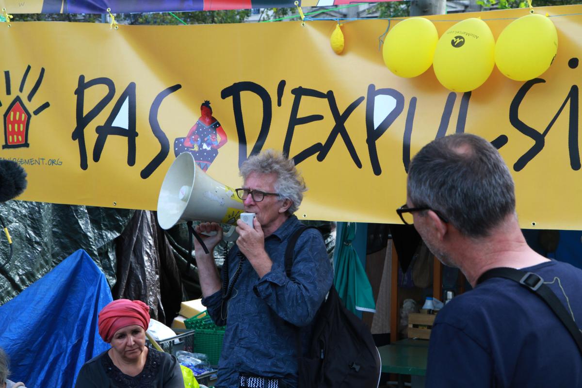 Campement du DAL, place de la République à Paris, depuis le début août 2015, contre les expulsions, pour le logement des habitants qui y vivent.