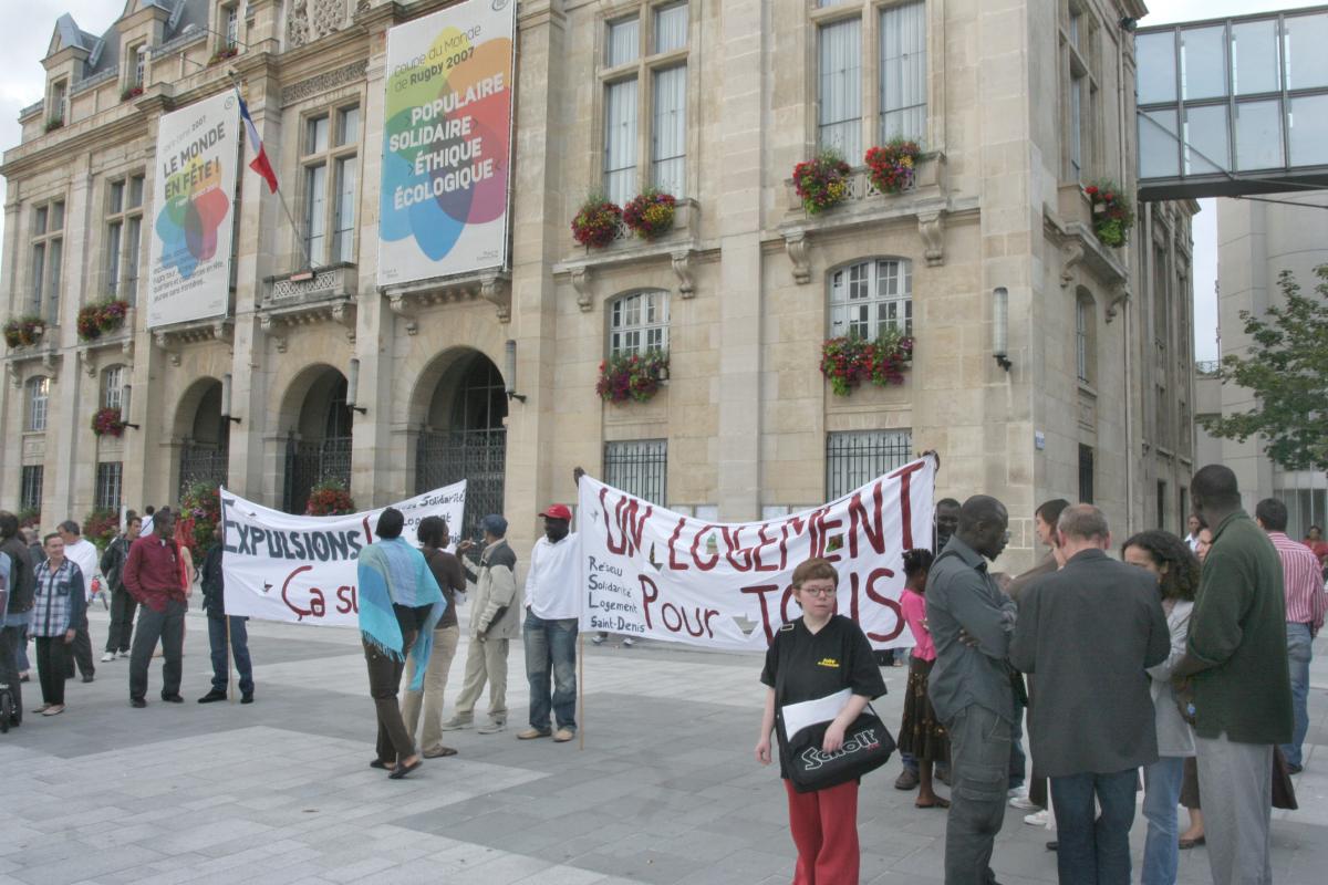 les expulsés du 33 albert walter devant la mairie de saint denis
