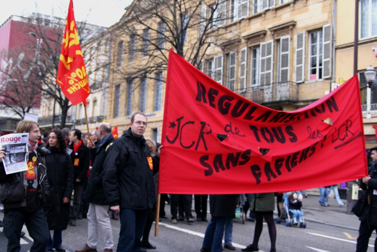 Le 19 janvier 2008,Cortège LCR lors de la manifestation à Metz contre les centres de rétention de sans papiers.