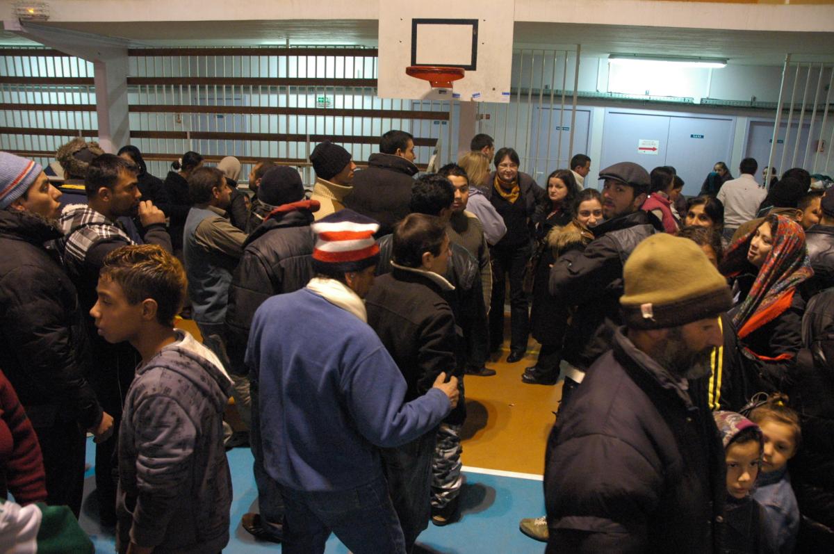 Rroms réveil au gymnase de Massy à 7h00 du matin avant expulsion.