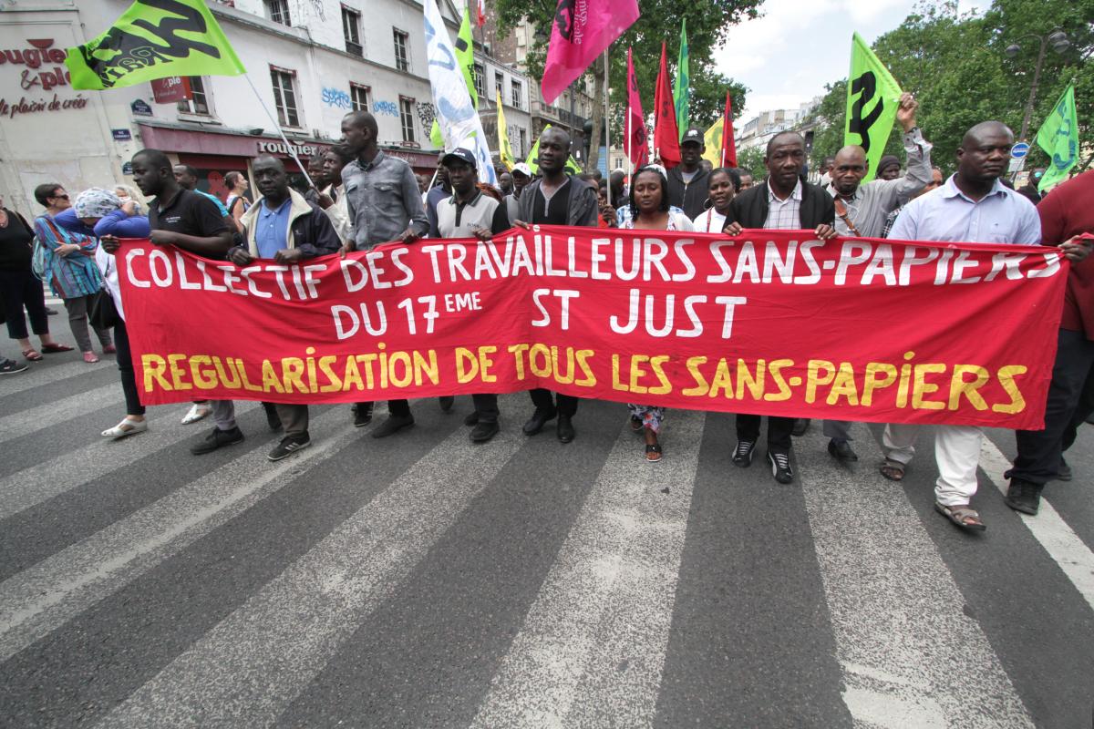 Paris, le 2 juin 2018, manifestation à l'appel des collectifs de sans-papiers de République à Bastille. La préfecture interdit la manifestation au delà de Bastille.