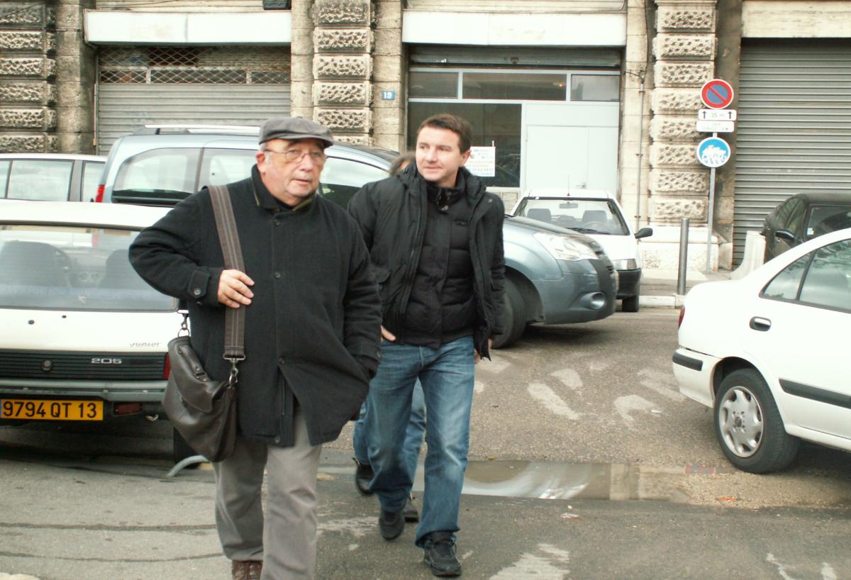 Marseille le 21/12/2010 : Visite de soutien dOLIVIER BESANCENOT aux postiers Du 2 éme arrondissement de Marseille en grève depuis plus de deux mois. contre le remplacement des facteurs de métier par des intérimaires