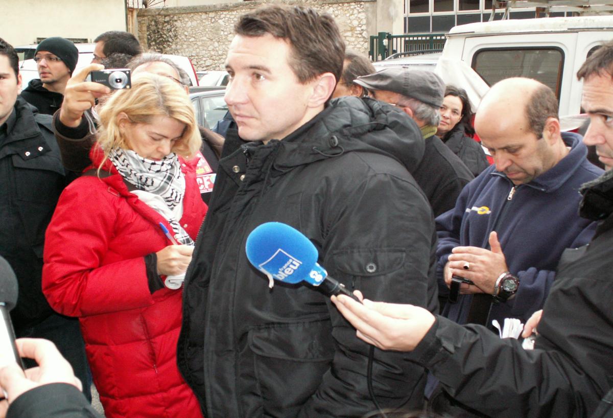 Marseille le 21/12/2010 : Visite de soutien dOLIVIER BESANCENOT aux postiers Du 2 éme arrondissement de Marseille en grève depuis plus de deux mois. contre le remplacement des facteurs de métier par des intérimaires