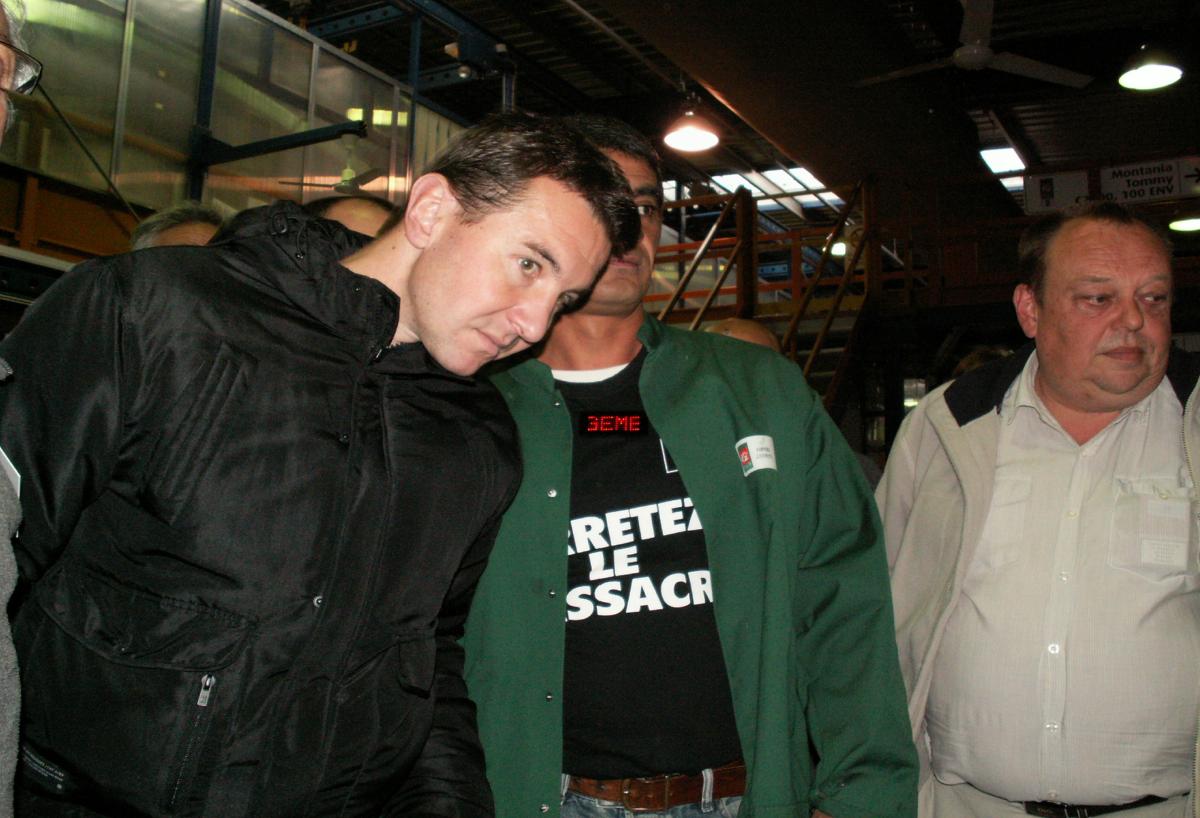 Gémenos le 21/12/2010 : visite de soutien dOLIVIER BESANCENOT aux travailleurs de FRALIB de GEMENOS , qui sopposent a la fermeture de leur usine par le groupe UNILEVER