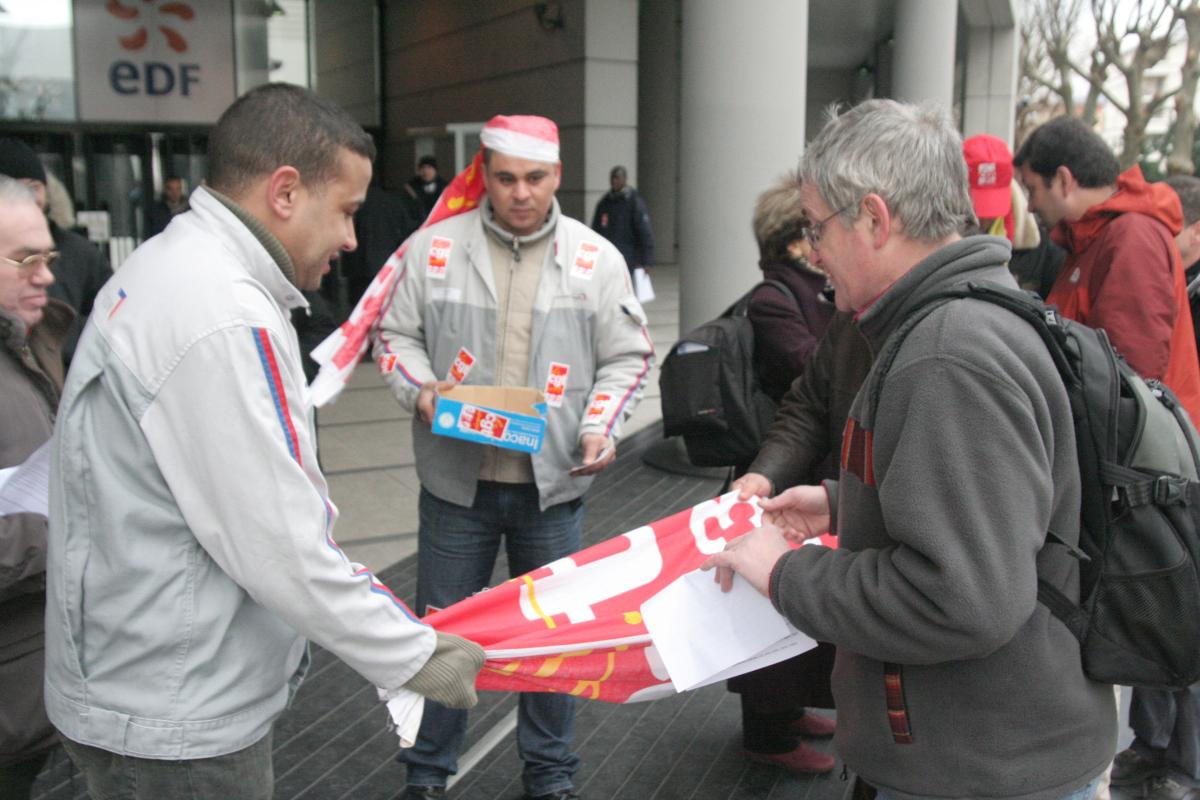 collecte pour les grévistes de Citroën devant le siège d'EDF