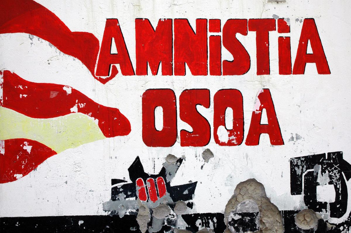 (Mention obligatoire : Photothèque Rouge/Photo Franck Houlgatte).Mur peint pour l'amnistie des prisonniers politiques en Euskadi. pasai Donibane. Août 2006