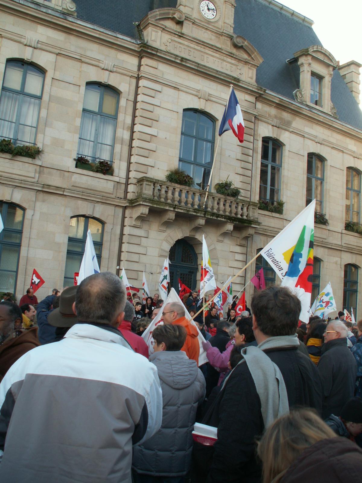 au départ de la manif du 8 février à Saint Brieuc ( + de 3 000 personnes )devant la mairie avec la FSU