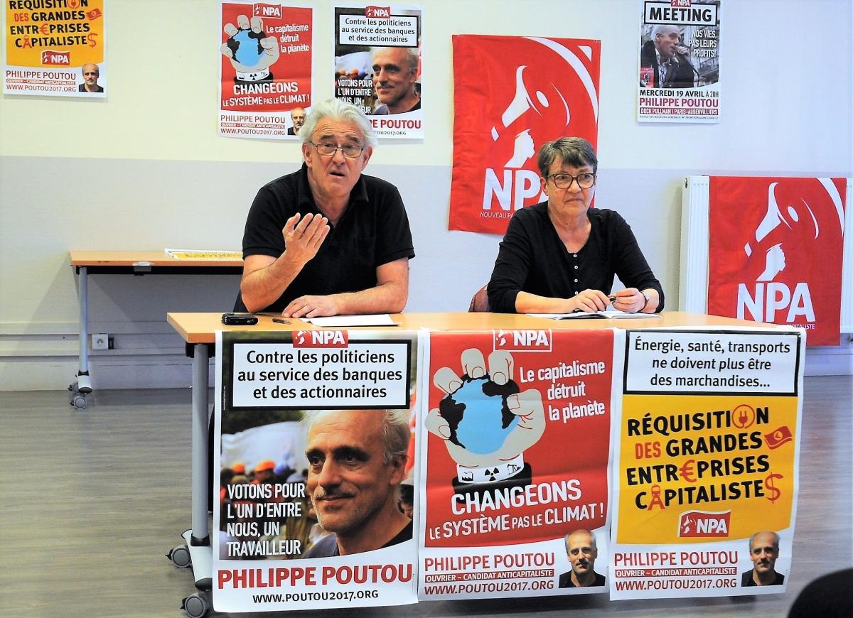 Tribune Galia Trepere Yvan Lemaître réunion publique en soutien à Philippe Poutou Evry 91 Mairie annexe