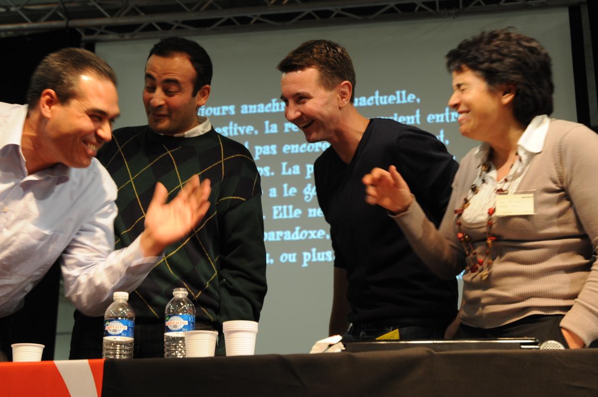 Convivialité et sourires à la fin du meeting de solidarité Tunisie Egypte au 1er congrès du NPA