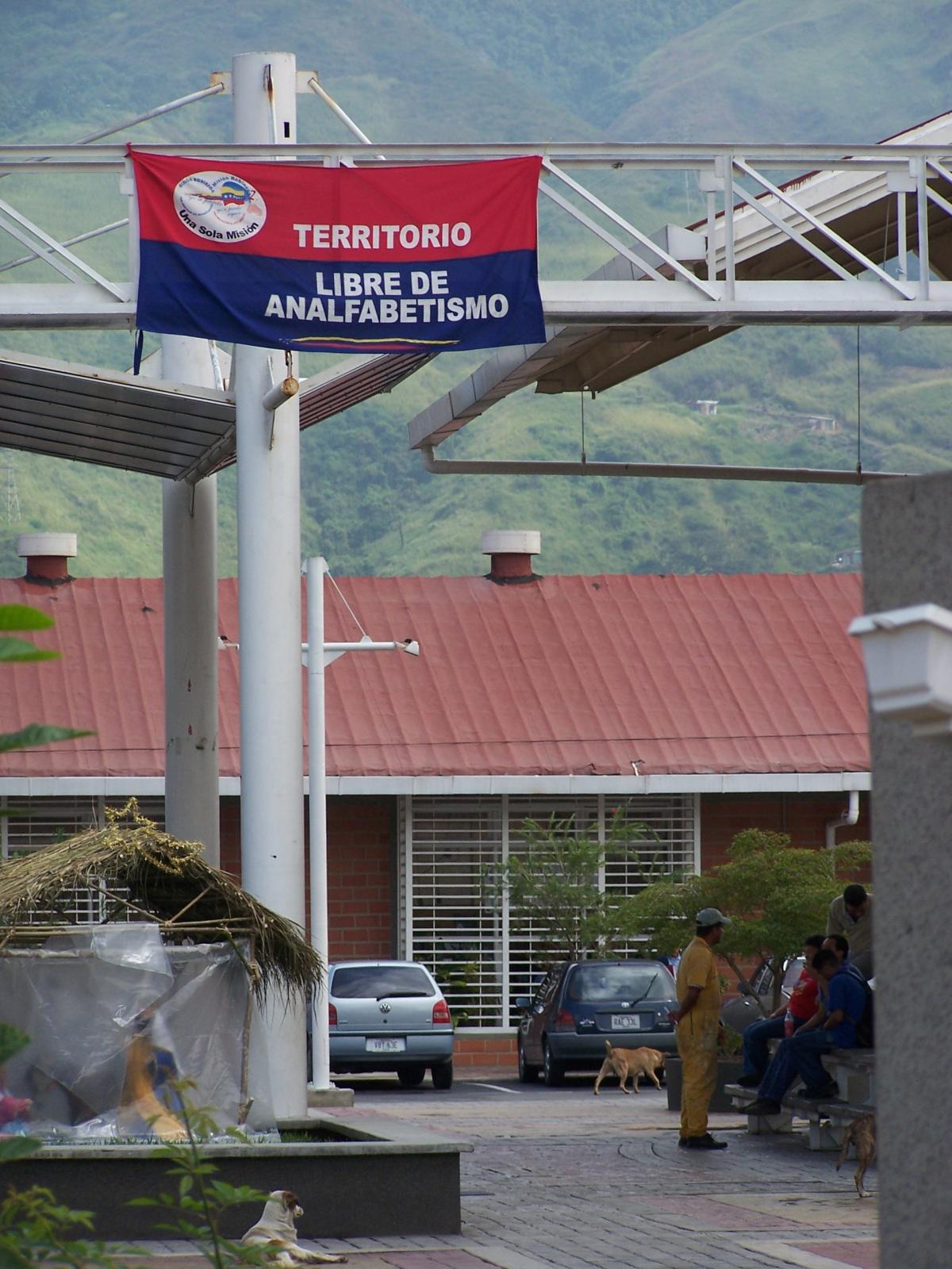 Nucleo (centre de développement endogène) Fabricio Ojeda du quartier Gramoven à Caracas. Banderole où est écrit