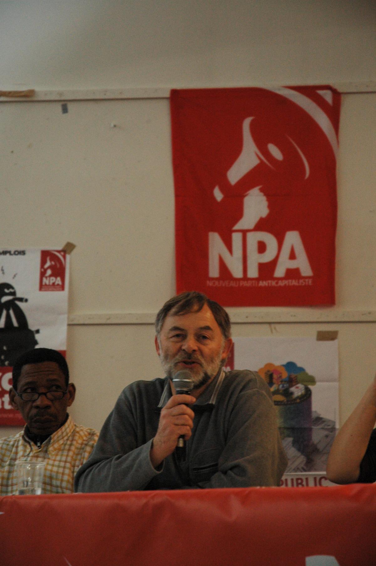 Lancement de la campagne régionale en ile de France bourse du travail de Saint Denis 07 02 2010. Olivier Besancenot présente les Huit têtes de liste départementales qui expriment chacune leurs thêmes d'intervention de leur département. (transport gratuit,logement,soutien à une grève. et luttes des Sans-Papiers)
