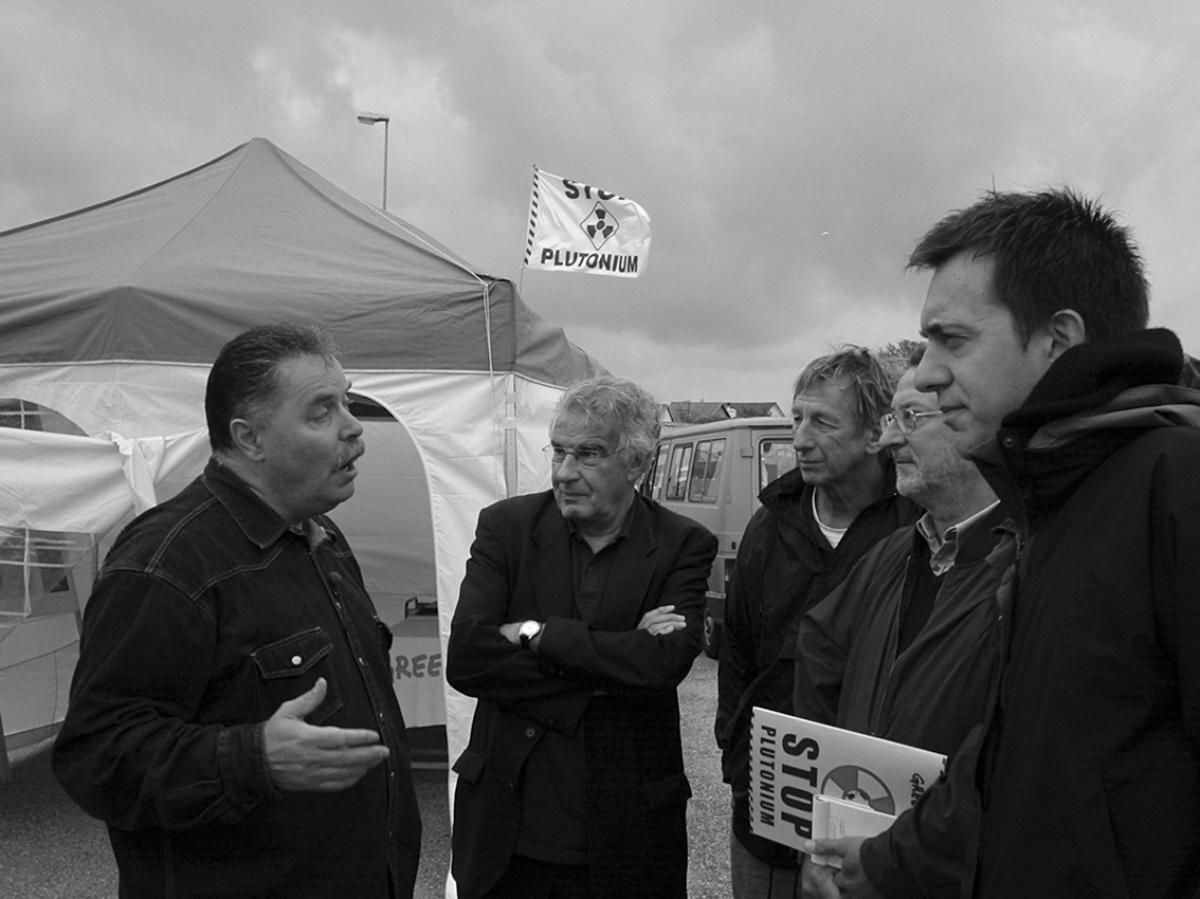 (Mention obligatoire : Photothèque Rouge/Photo Franck Houlgatte). Stéphane L'homme, Alain Krivine,Didier.Anger,François Dufour et hélène Gassin lors de l'appel de Cherbourg contre l'EPR.